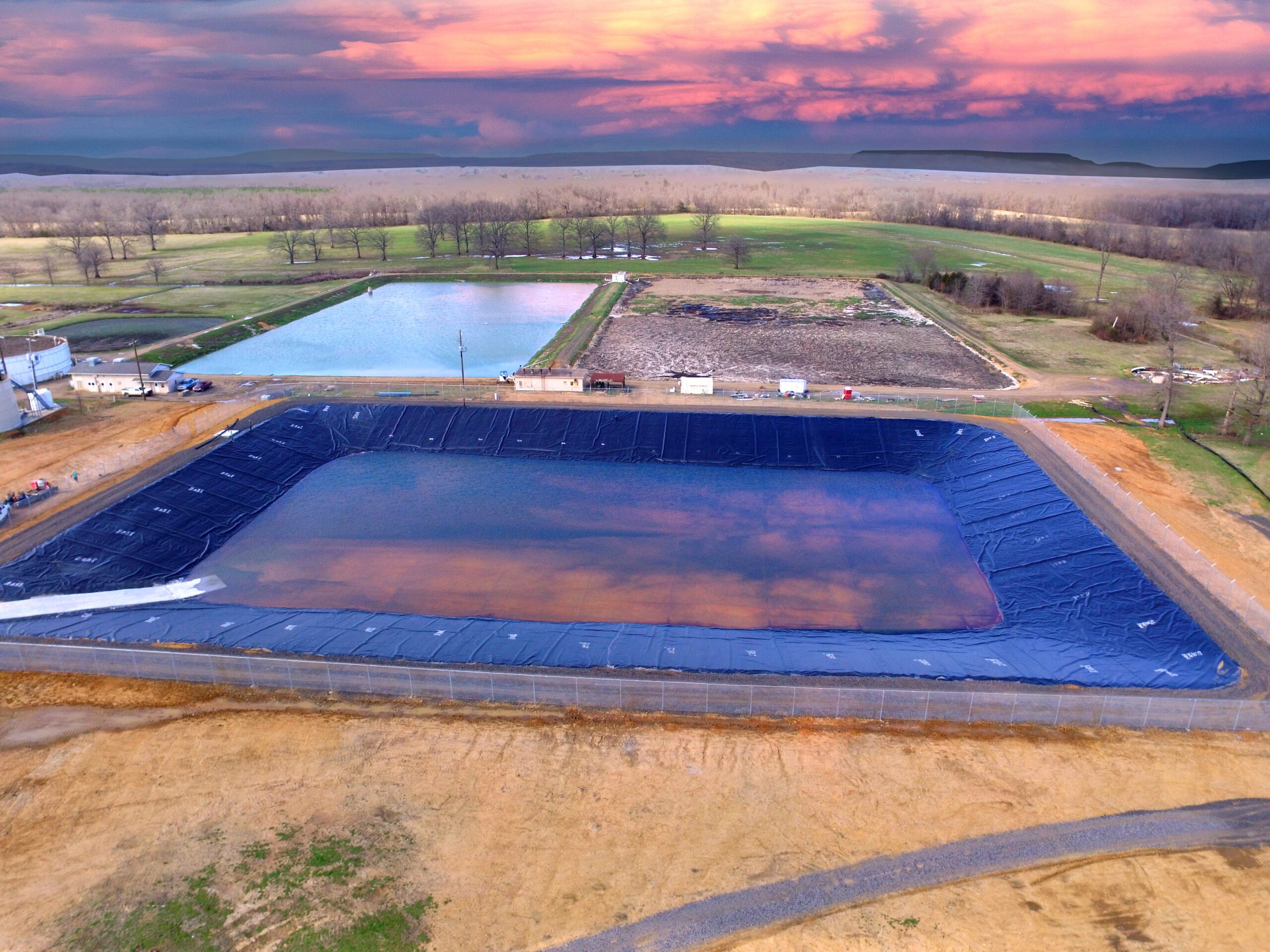 sludge containment lagoon and integrate it into their existing Wastewater Treatment facility in their Danville, AR. Plant. This included using a location of an existing, unlevelled cattle grazing field with questionable soils, Relocation of existing high voltage power lines by ENTERGY, maintaining and complying with Wayne Farms high standards of Contractor Site Safety, tying into multiple Plant structures, and piping and providing for a sludge processing system that will effectively service the Plant’s needs for the foreseeable future.